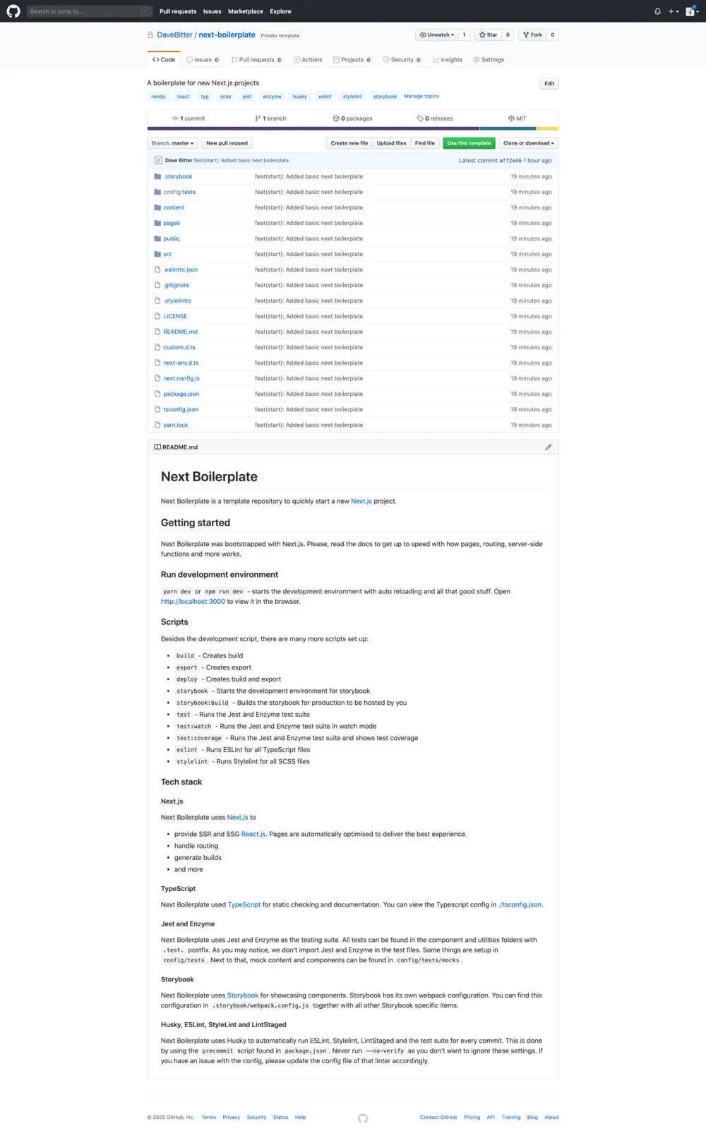 That was all the setup that is required. Whenever I want to start a new project with this repository I go to the Next Boilerplate and click the green button saying 'Use this template'.
